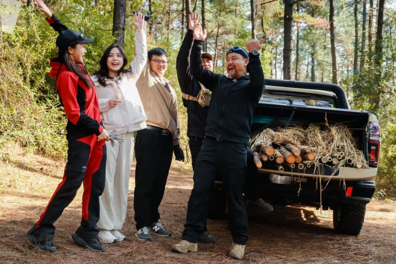 五大荒野趣味挑戰,層層遞進、環環相扣。在搭建庇護所環節,嘉賓們利用長城炮運輸木材、傘繩等物資,完成從選址到搭建的全流程,有人展現出“荒野建筑師”的天賦,有人在手忙腳亂中貢獻笑點,考驗著團隊的協作與空間規劃能力;狩獵挑戰中,嘉賓們利用層壓工藝制作簡易弓箭,在指定距離內進行模擬射擊,成為活動中的經典;橫渡挑戰環節聚焦高空繩索穿越技能,嘉賓們在專業指導下克服恐懼、默契配合,展現了從膽怯到勇敢的成長蛻變;凈水與取火挑戰則回歸生存本質,嘉賓們利用木炭、細沙、枯草等天然材料,搭建簡易凈水裝置、掌握弓鉆取火技巧,在實踐中鍛煉了生存技能。這不僅是一次沉浸式的荒野挑戰,更是一場生動的野外安全實操課。