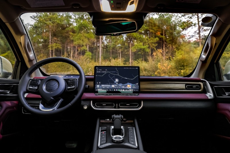 NVH性能同級領先,創新雙后圍設計,配合迷宮式出氣口、隱藏式后門縫、車箱與車身間的全密封設計、雙層隔音玻璃以及尾翼導流等加持,還有舒適豪華的座艙,有效隔絕荒野路況的顛簸與噪音,讓長途奔波也能感到舒適。山海炮Hi4-T四門、底板、車頂均有防撞鋼梁,車頂能夠承受約車身4.2倍靜態壓力等,為荒野出行筑牢安全防線。最引人矚目的是最大6kW的放電能力,成為荒野生活的“能量核心”——不僅支撐起荒野鐵板燒的全程用電,還能為電磁爐等設備供電,打造出兼具煙火氣與儀式感的“賽博篝火”,拓展了戶外生活的想象邊界。