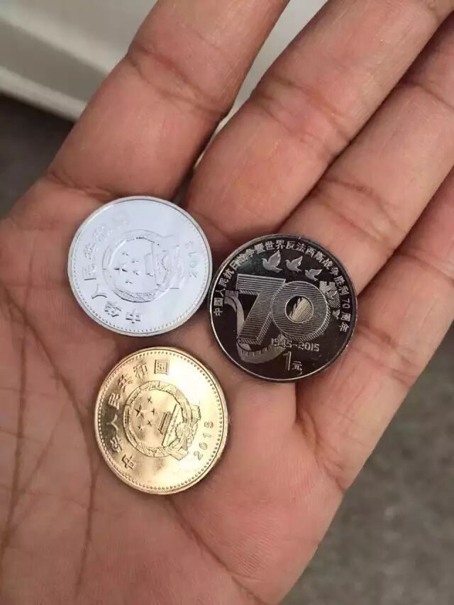 中國人民銀行自2015年8月20日起陸續發行中國人民抗日戰爭暨世界反法西斯戰爭勝利70周年紀念幣套裝。該套紀念幣包括金銀紀念幣3枚、鎳包鋼紀念幣1枚,均為中華人民共和國法定貨幣。其中,金銀紀念幣包括7.776克(1/4盎司)金質紀念幣1枚、31.104克(1盎司)銀質紀念幣1枚、155.52克(5盎司)銀質紀念幣1枚。