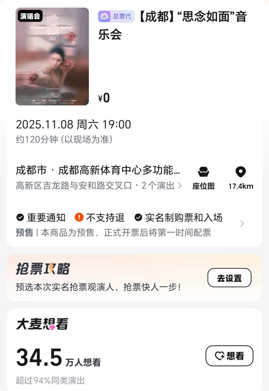 據悉,此次趙露思音樂會門票通過答題通關、0元預約的形式發放。參與流程是先進行答題,然后獲得預約資格。紅星新聞記者注意到,此次的題目都和趙露思的個人經歷有關。當晚8點時,該音樂會在票務網站上的“想看”人數就已飆升到34.5萬。大概不到半個小時,所有門票就已經搶完,票務網站頁面顯示“缺貨”。
